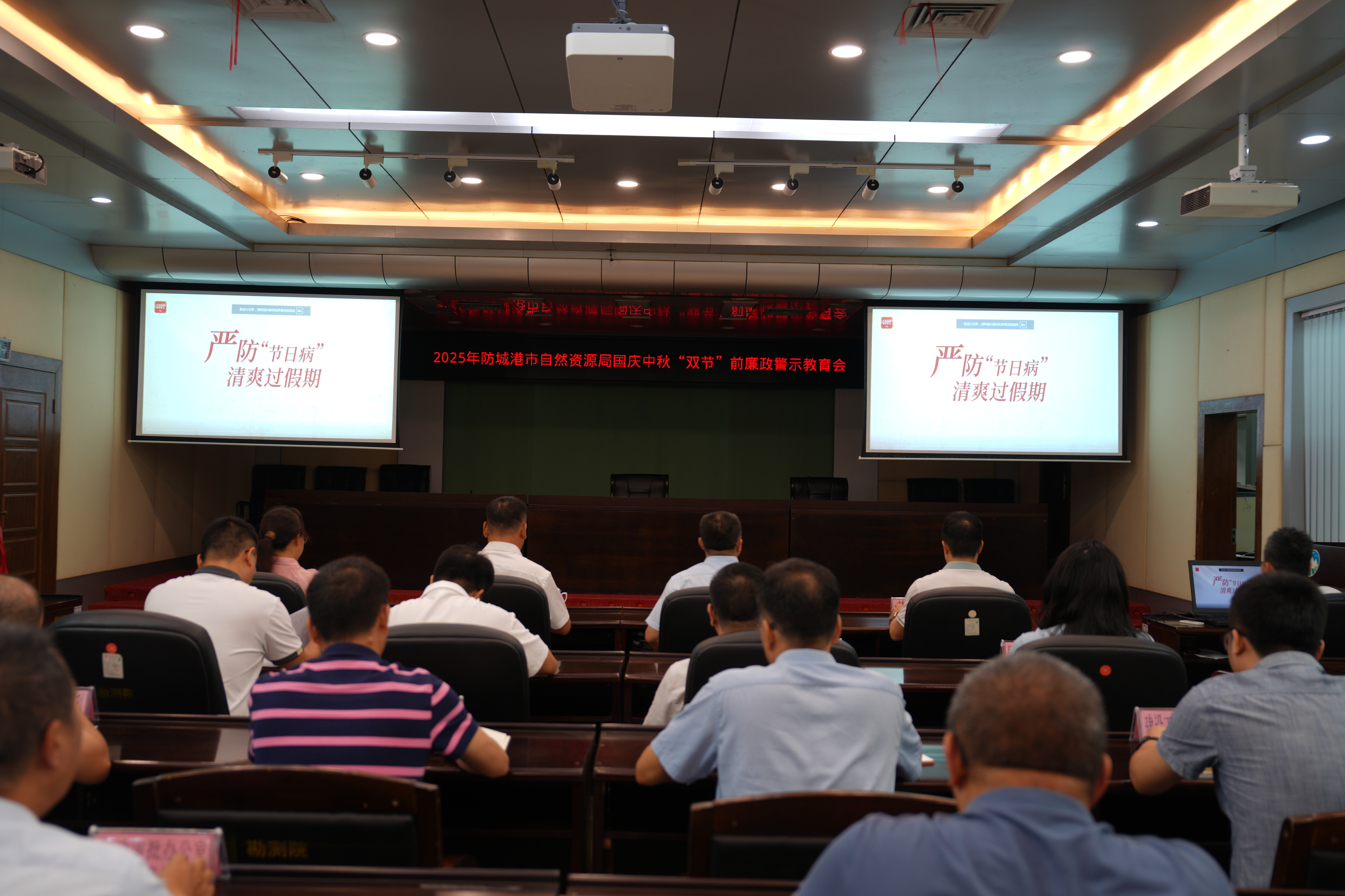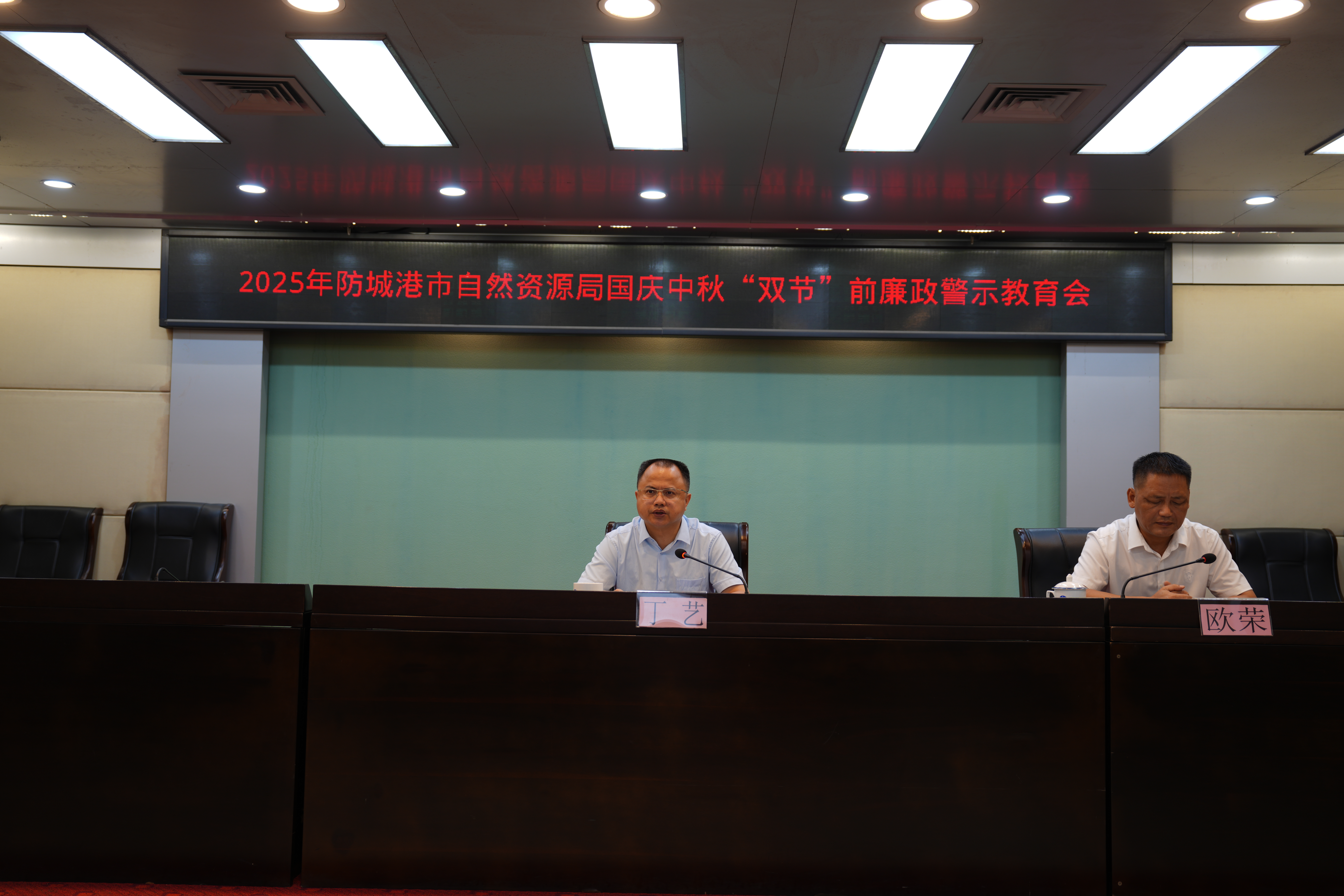 随着国庆中秋“双节”的临近,为落实全面从严治党的要求,进一步严明纪律规矩,强化警示教育,营造风清气正的节日氛围。2025年9月25日上午,防城港市自然资源局召开国庆中秋“双节”前廉政警示教育会,局党组成员、副局长欧荣主持会议,局党组书记、局长丁艺作节前廉政讲话。