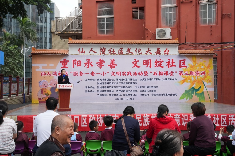 岁岁重阳,今又重阳。为传承“尊老、敬老、爱老、助老”的中华传统美德,深化党建引领群团建设,将铸牢中华民族共同体意识融入基层服务,同时普及自然资源政策、做好在职党员到社区“双报到”工作。10月29日上午,防城港市自然资源局机关党委组织在职党员、退休干部走进仙人湾社区,开展“党建领航庆重阳,孝善同行暖社区”主题党团日活动。防城港市委党校、市财政局、市住建局、力峰集团、桂林银行等多家单位协同参与,与社区老年人、儿童共度温馨祥和的传统佳节。