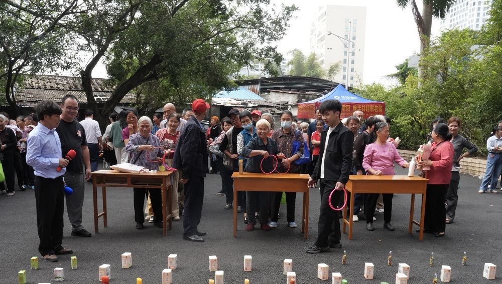 游园活动是此次重阳节活动的核心环节,重点打造“趣味+科普”双特色场景。防城港市自然资源局机关党委用心准备的套圈活动深受居民喜爱,大家有序排队、瞄准投掷,现场笑声不断。在欢乐互动的同时,安排党员、退休干部担任“政策宣传员”,在活动间隙主动向居民发放自然资源宣传手册,结合手册内容用通俗易懂的语言讲解地质灾害防范要点、违法用地法律后果等知识,针对老年人关心的“如何识别地质灾害隐患”“遇到违法占地该怎么办”等问题逐一解答,切实提升居民的安全意识与法治观念。