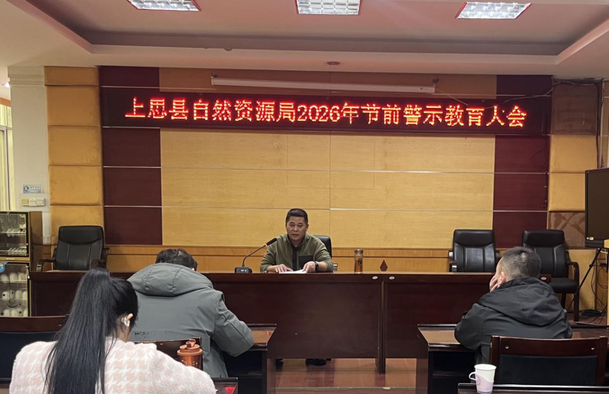 为深入贯彻全面从严治党要求,严明节日纪律、筑牢廉洁防线,确保干部职工度过风清气正、平安祥和的新春佳节,2026年2月13日上思县自然资源局组织召开2026年节前警示教育大会。会议由局党组书记、局长林宇主持,局全体干部职工参加会议。局党组书记、局长林宇主持会议。