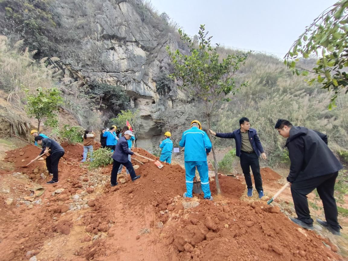 春回大地,万物勃发。为深入探索党建工作新思路,推动基层党组织结对共建走深走实,3月9日上午,上思县人民检察院、自然资源局、文化广电体育和旅游局、华润水泥(上思)有限公司等四个单位党支部约30余名党员及入党积极分子,齐聚上思县思阳镇计怀村计怀屯弄怀岩石刻洞口附近,开展“党建红引领生态绿,‘益’‘企’守护美好家园”植树节共建主题党日活动。