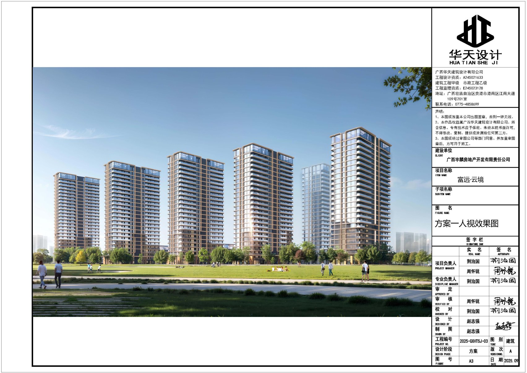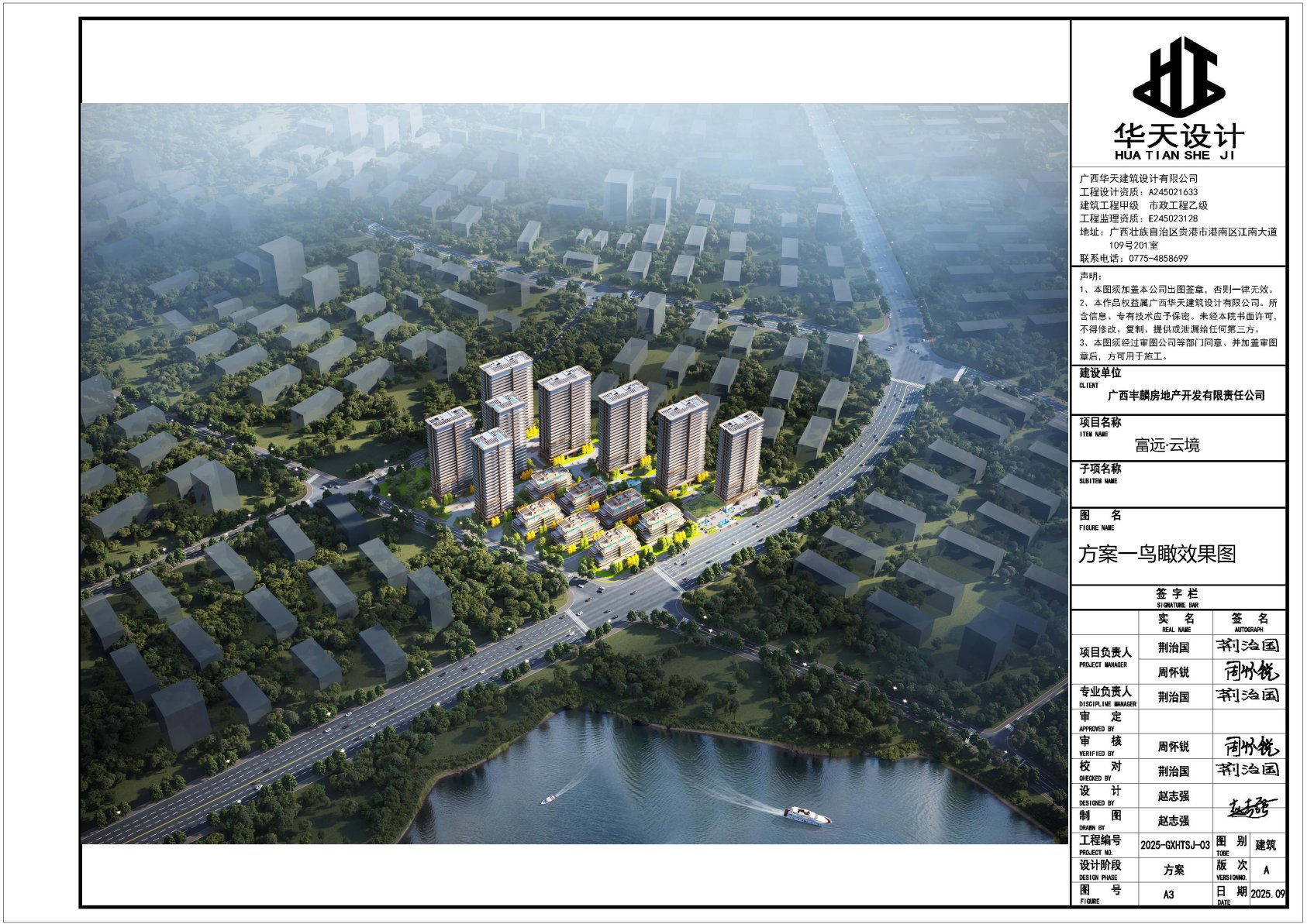 (四)建设方案:广西华天建筑设计有限公司于2025年9月编制的富远·云镜项目建筑规划设计方案一。
