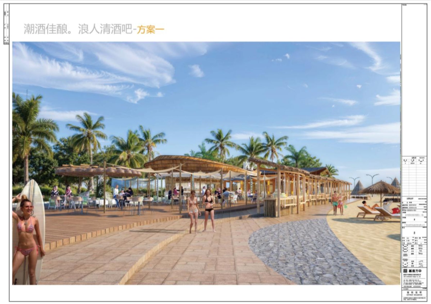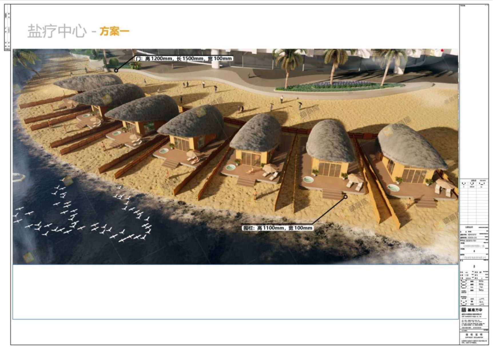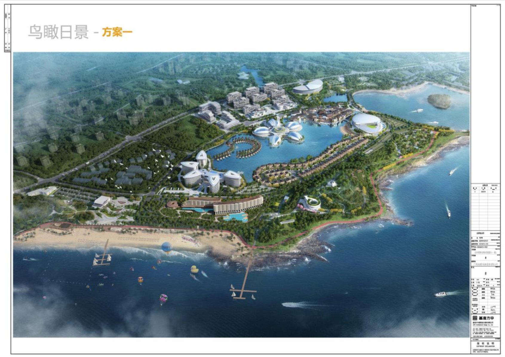 总平面变更的内容是:增加一栋员工配套管理用房,建筑高度12米,层数4层,总(计)建筑面积9709.05㎡;白沙湾国际疗愈度假酒店设计方案变更,现方案建筑高度23.95米,层数6层,总建筑面积29697.34㎡,计容总建筑面积22364.66㎡;盐疗中心区域增加7座树鲨沙屋,每座树鲨沙屋的建筑高度为5.6米,层数为1层,总(计)建筑面积525㎡;调整山海剧场的位置,山海剧场名称变更为山海疗养互动广场,位置向北方向移动,取消第七区北侧一座公共配套厕所(位于传统手工艺坊北侧),新增一座配套建筑,建筑高度4.8米,层数1层,总(计)建筑面积203.14㎡。增加一座海上运动接待中心,建筑高度4.6米,层数1层,总(计)建筑面积263.71㎡;增加一座沙滩海景餐厅,建筑高度3.95米,层数1层,总(计)建筑面积320.71㎡;增加一座酒吧,建筑高度3.45米,层数1层,总(计)建筑面积172.35㎡;增加5座景观休闲亭,建筑高度3.50米,层数1层,总(计)建筑面积76.25㎡;医学集散中心A、B区、渔家风情驿站、盐疗中心、金花自然医学中心的建筑外立面轮廓进行微调。