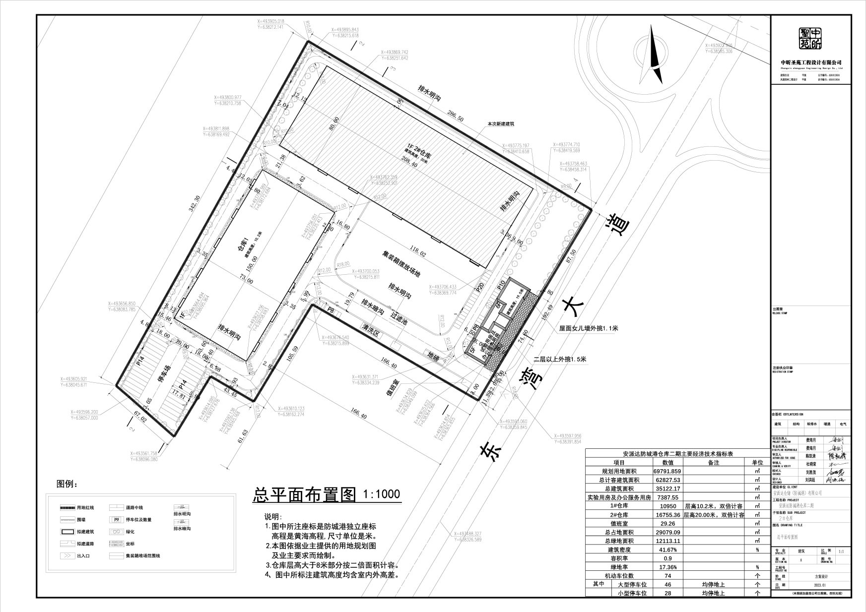 安派达防城港仓库二期项目于2023年取得批复总平面图并取得相应的工程规划许可证(建字第450600202300057号)。目前项目在建设中,建设单位提出为响应政府加快充电基础设施建设和推动新能源汽车应用,需配套建设新能源重卡充电站项目,由于原出入口位置不方便重卡货车出入,且临近办公楼人员密集,存在交通安全隐患,为便于管理,申请在东北面临东湾大道新增一个9米的出入口。