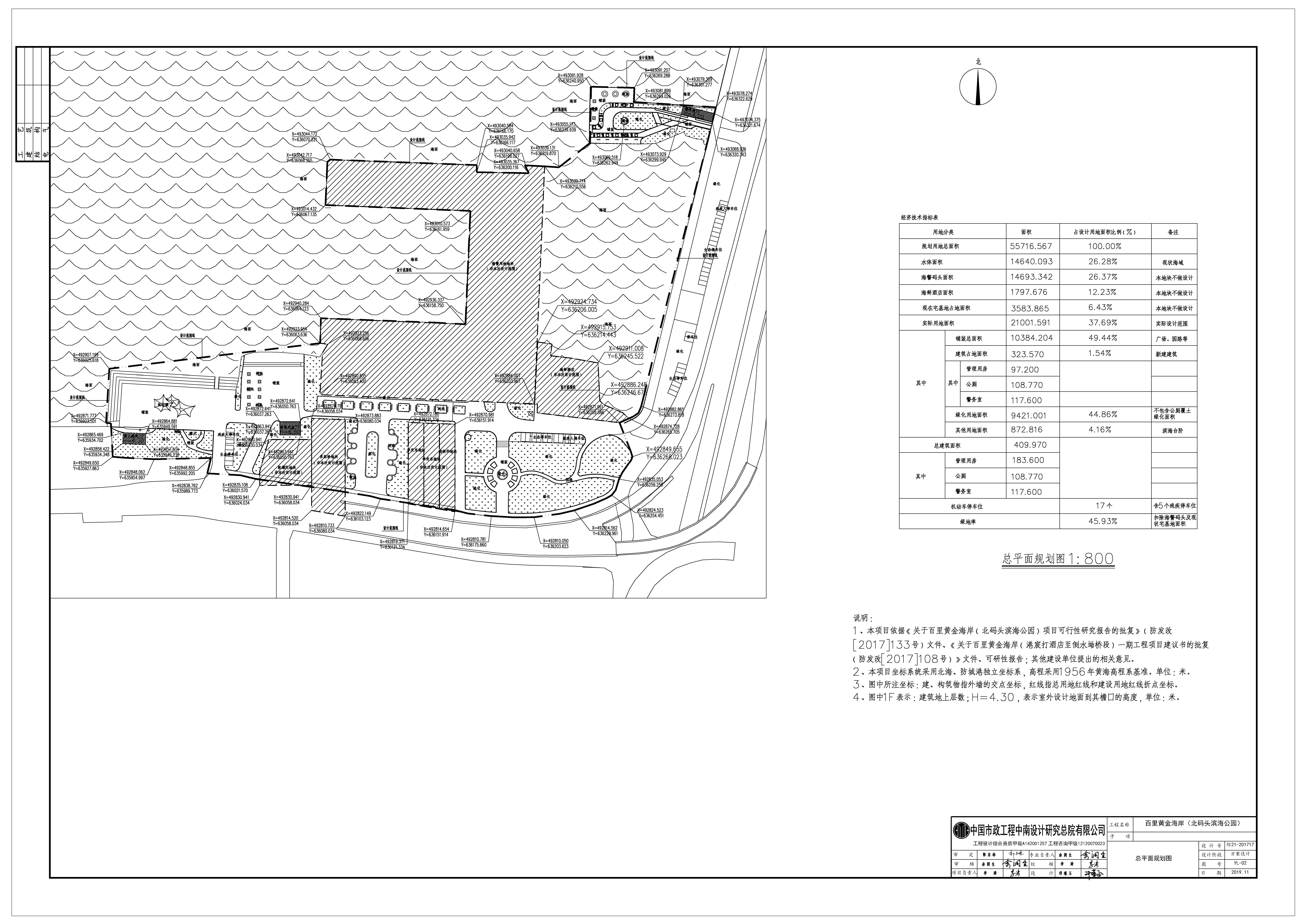 (一)选址意见的复函(防住建函﹝2017﹞483号):总用地面积55716.567㎡,其中用海面积:16974.0㎡,陆地面积:38742.567㎡。